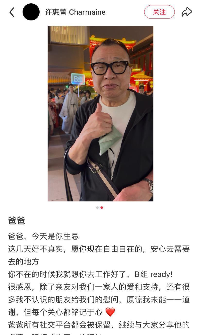 许绍雄77岁生忌,许惠菁发文延续“欢喜”精神,不会注销社交账号